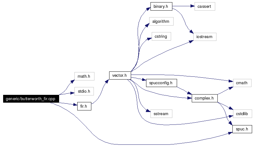 #include <math.h>#include <stdio.h>#include <fir.h>#include <spuc.h>Include dependency graph for butterworth_fir.cpp: